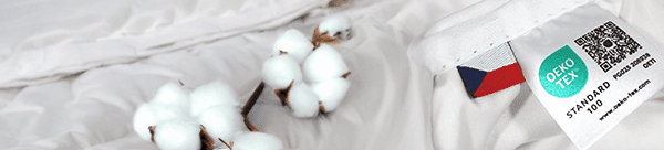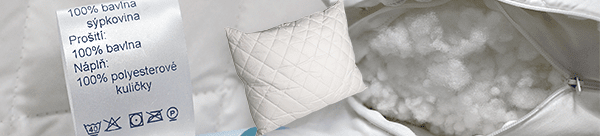 Povrchovým materiálem je 100% bavlna - jemný batist. Polštář poskytuje příjemný chladivý pocit.