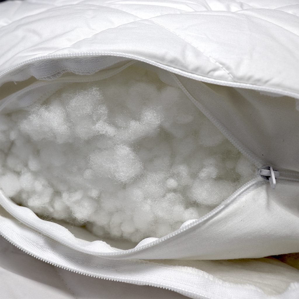 Polštáře jsou tvořeny dvojím vakem pro pohodlnější praní - nemusíte prát celý polštář, ale stačí sundat vnější povlak. Výplň je tvořena z kuličkového vlákna pro zachování tvarové stálosti. Polštáře jsou středně vysoké, lze k nim dokoupit náhradní náplň pro doplnění a zvýšení výšky. Oba vaky jsou opatřeny zipem, není tak problém náplň přidávat či odebírat.